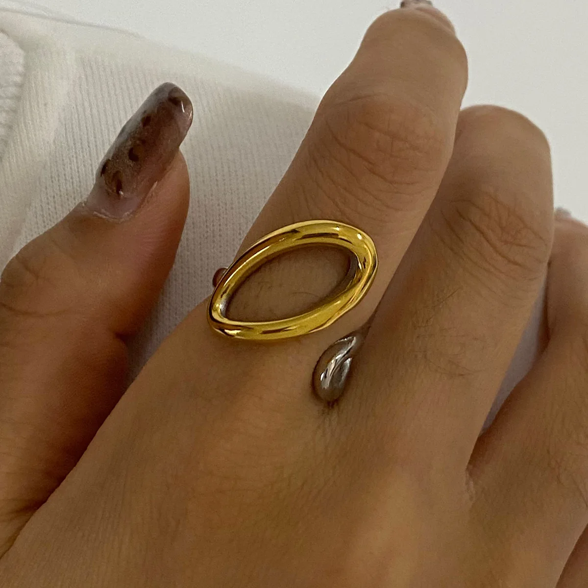 Mirawell Women's Stylish Geometric 18K Gold-Plated Stainless Steel Two-Tone Waterproof Hypoallergenic Daily Wear Ring Fashion
